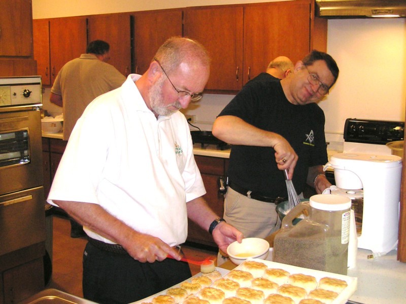 Richard and Mickey fixing the Biscuits and Gravy. 4th of July 2006. |