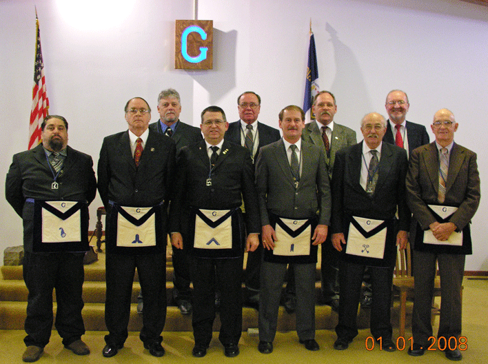 Grand Lodge officers of Indiana present at Nashville Lodge for the installation of the 2008 Bartimeaus Lodge UD officers 24 May 2008 |